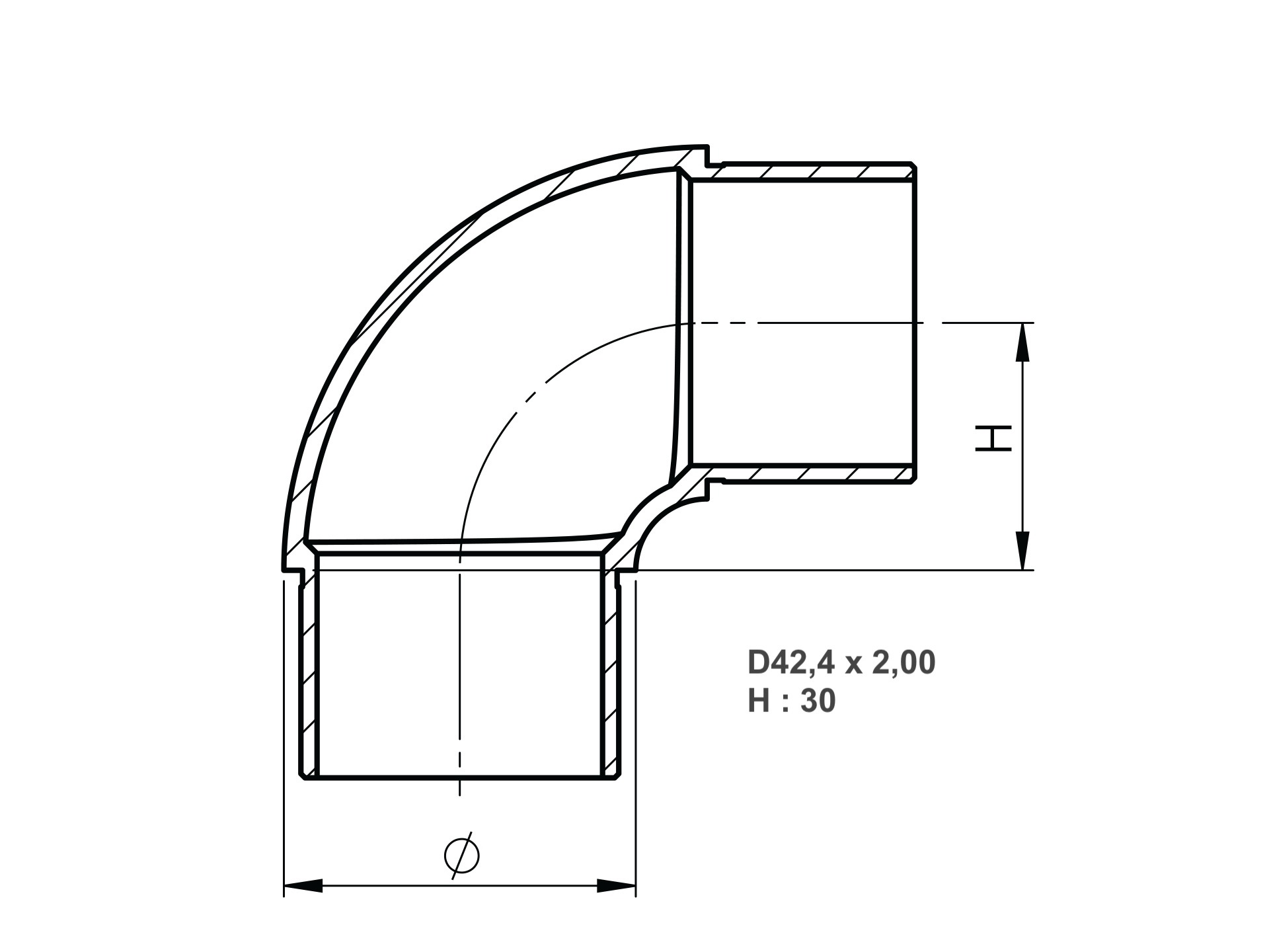 Coude à 90° arrondi en inox – Ø42,4 x 2 mm