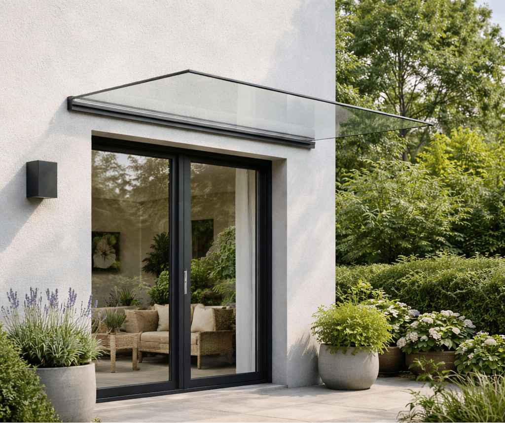Découvrez notre kit de marquise en verre, solution moderne et élégante pour la protection des entrées. Le set complet comprend un profilé en aluminium, des embouts, un couvercle, un joint ainsi que toutes les pièces nécessaires au montage final du verre.
