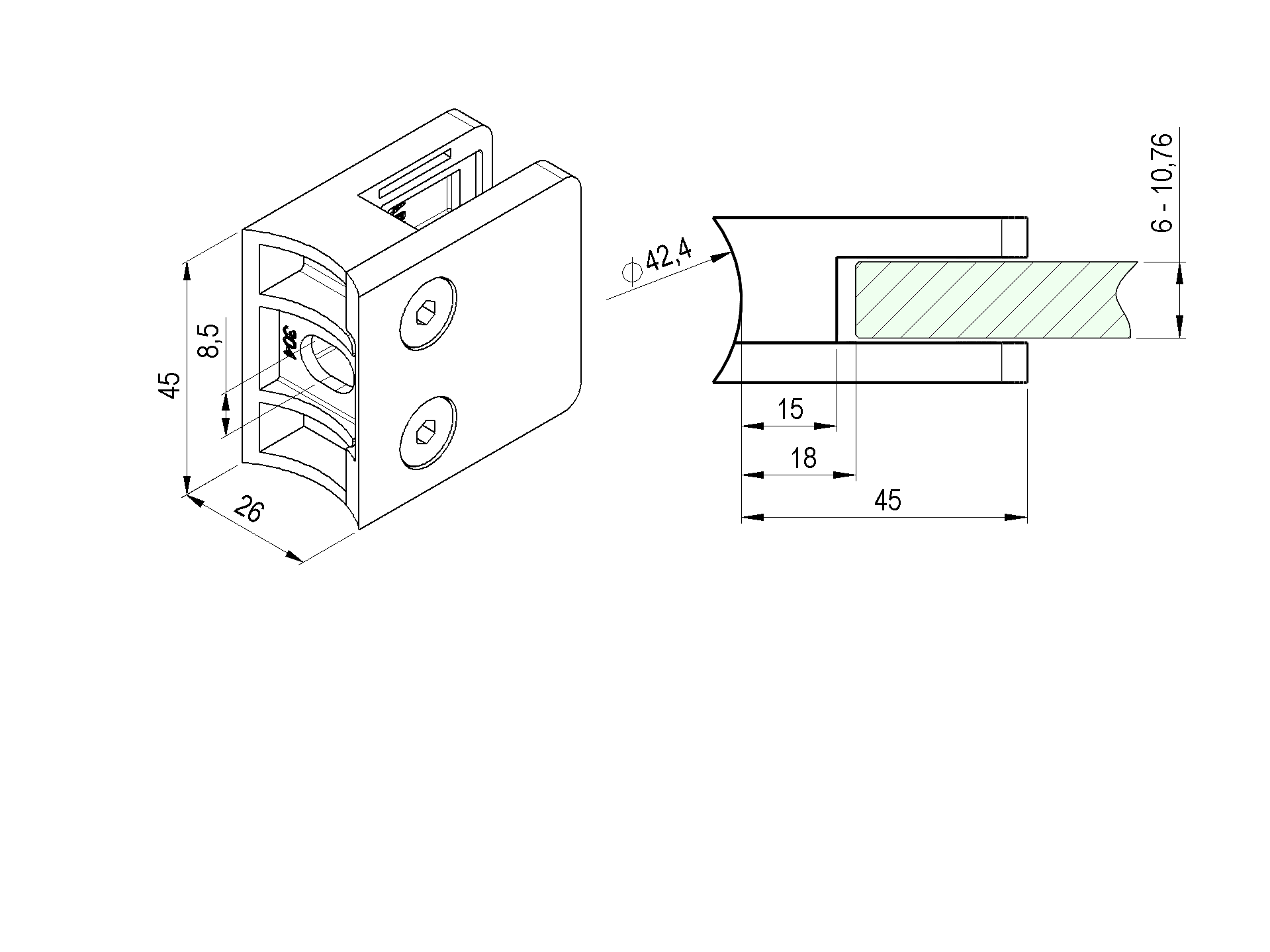 Grâce à son design compact, cette pince permet une fixation discrète mais efficace, répondant aux normes de sécurité en vigueur. Elle est compatible avec des verres feuilletés ou trempés, utilisés dans des structures où la solidité et la transparence sont essentielles.