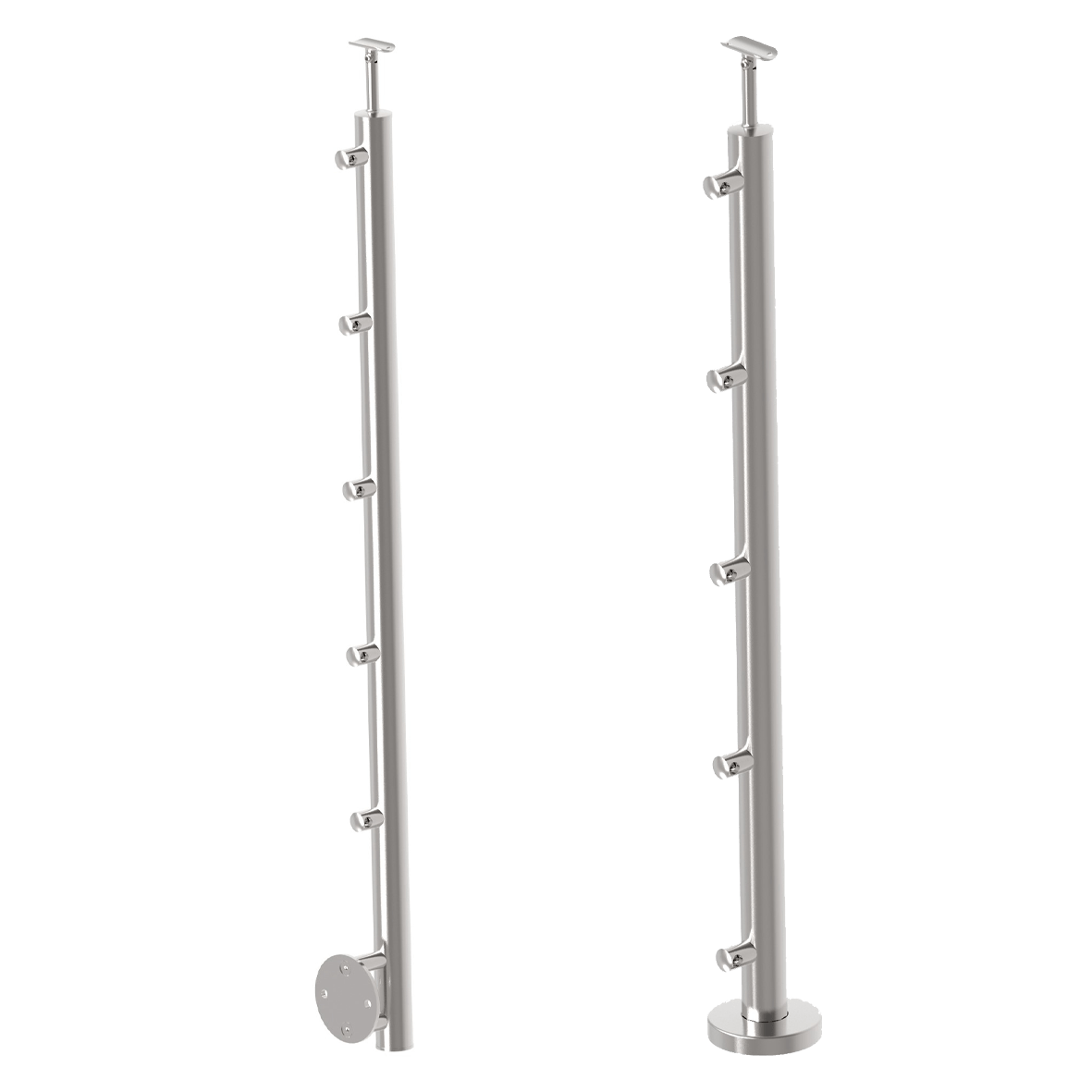 Poteau 5 lisses inox brossé 304 ou 316 – pose à l’anglaise ou au sol