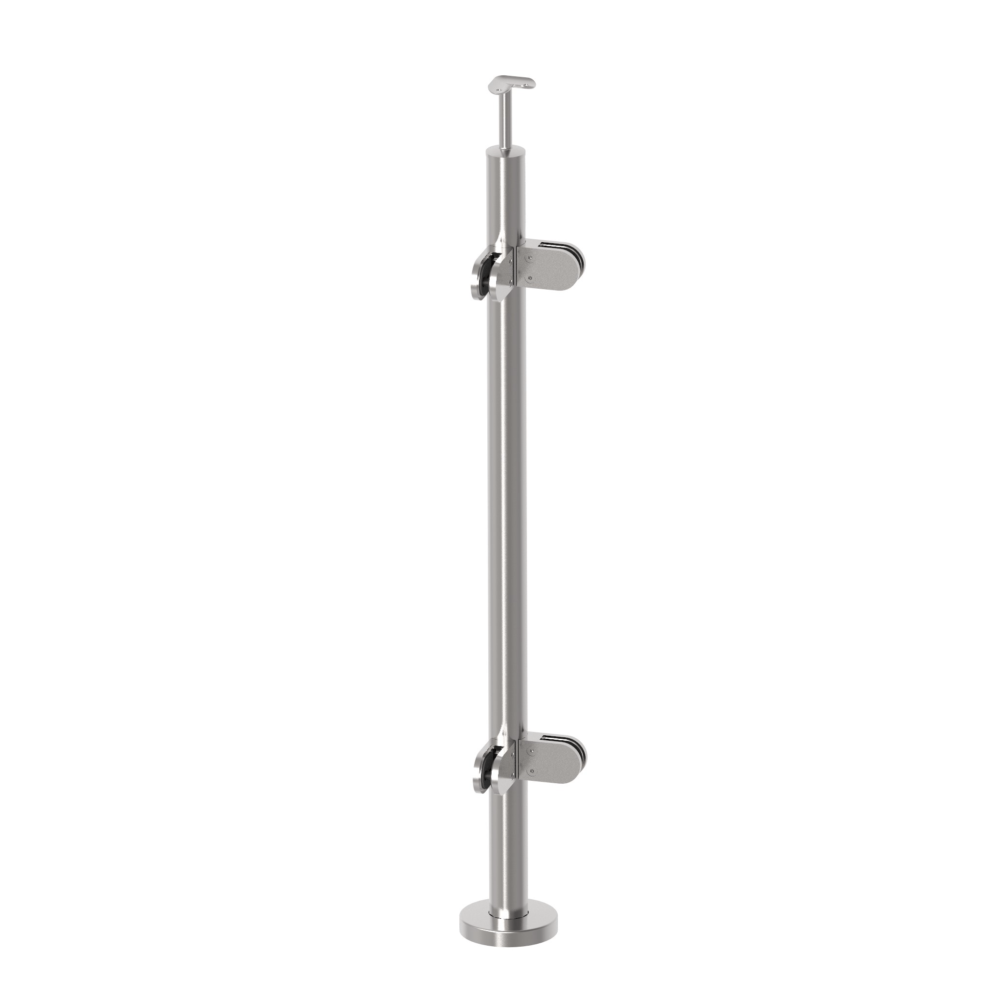Ce poteau en inox brossé est conçu pour les garde-corps en verre nécessitant une liaison à angle droit (90°). Grâce à ses 4 pinces à verre, il permet une fixation stable et sécurisée des panneaux sur deux côtés perpendiculaires.