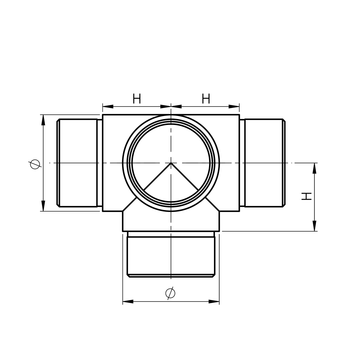 Raccord de main courante 4 départs – Inox 304 brossé Ø33,7 mm