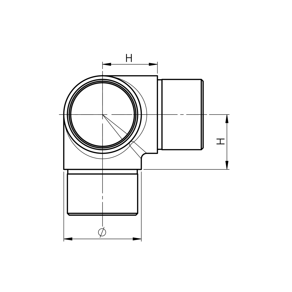 Raccord de main courante à 90° – 3 départs en inox 304 brossé Ø33,7 mm