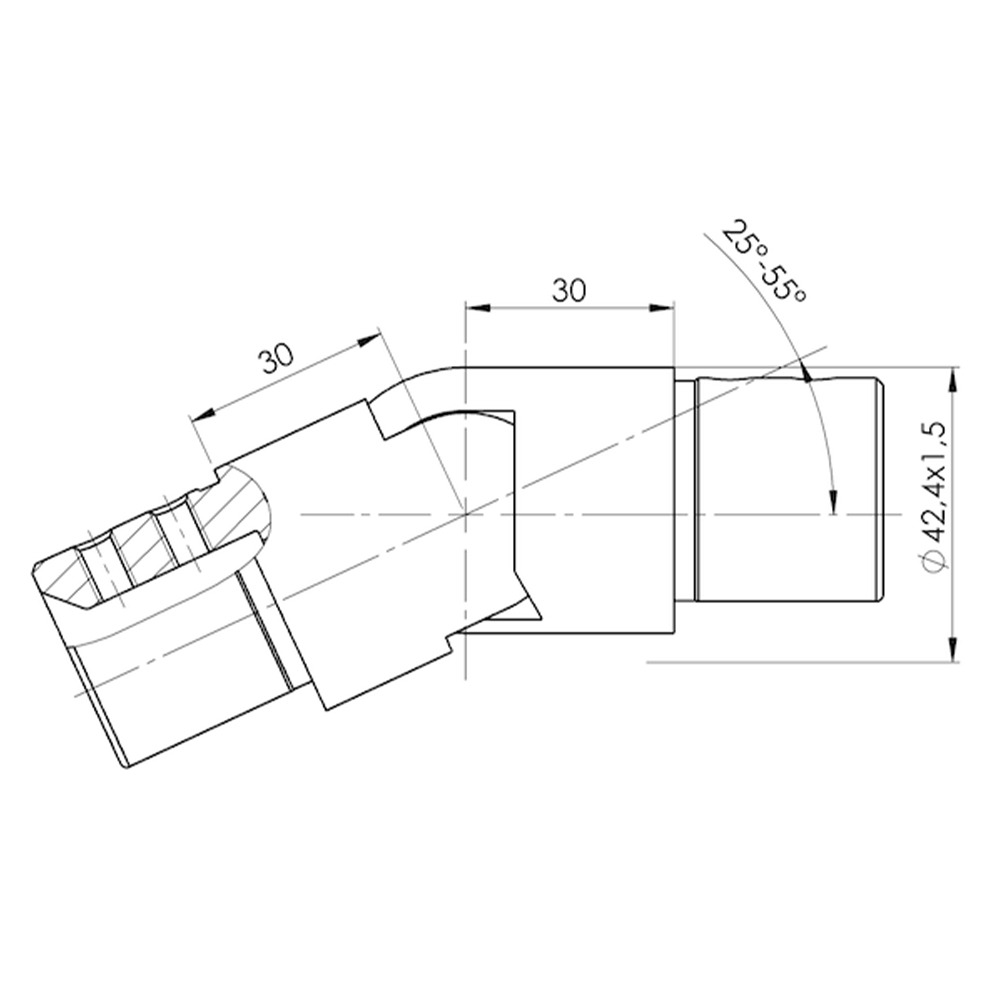 Le raccord orientable rampant haut pour tube à gorge inox Ø42,4 mm est conçu pour faciliter l’assemblage de sections de tube en pente, notamment dans les installations de garde-corps sur escaliers ou plans inclinés. Grâce à son articulation, il permet d’obtenir un angle précis et ajustable, garantissant un alignement parfait et une finition professionnelle.