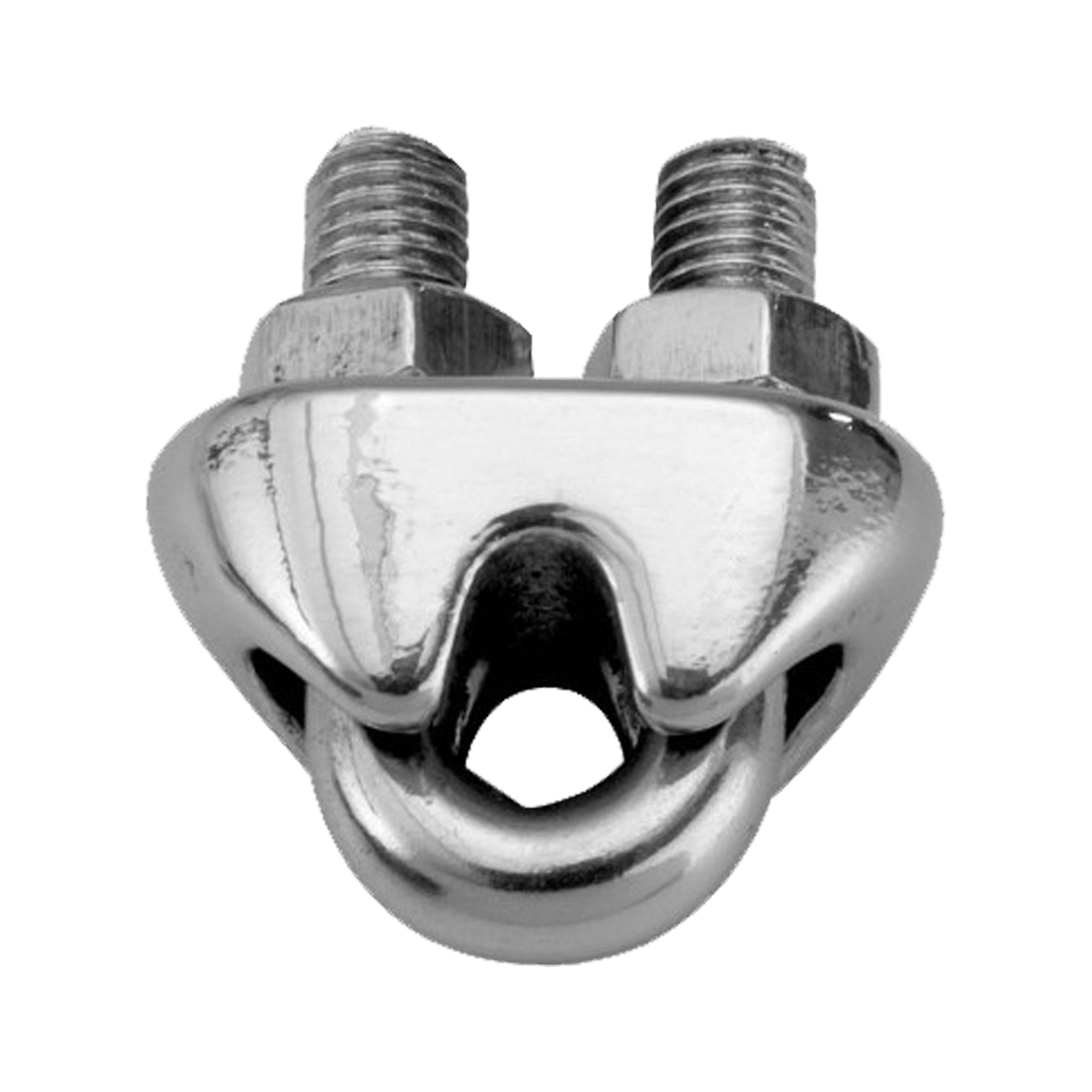 Son étrier en U, sa selle crantée et ses écrous hexagonaux permettent une prise ferme sur le câble et évitent tout glissement. Ce type de serre-câble est couramment utilisé dans les installations de garde-corps à câbles inox, le haubanage, les systèmes de levage, ou encore la signalétique suspendue.